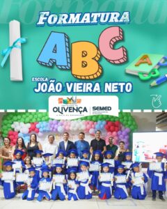 Um dia inesquecível para nossos pequenos 🎓✨ A Escola João Vieira Neto celebrou a Formatura do ABC, marcando o início de uma linda trajetória de aprendizado, sonhos e conquistas. 📚
