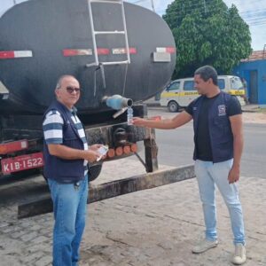 realiza semanalmente o monitoramento da qualidade da água que é fornecida pelos carros pipas na zona urbana e rural da cidade,